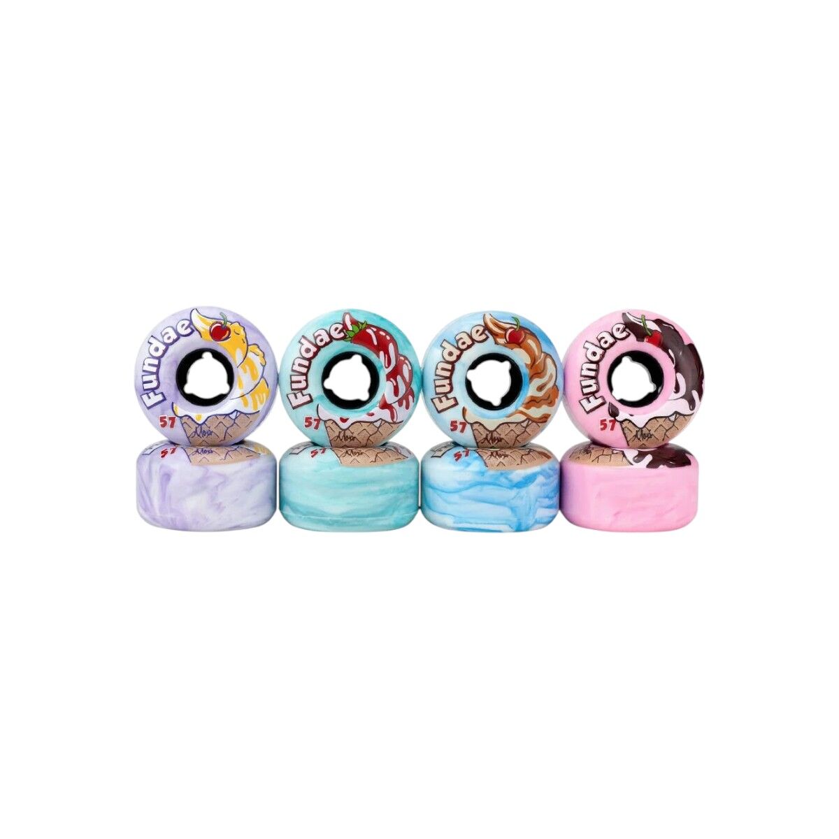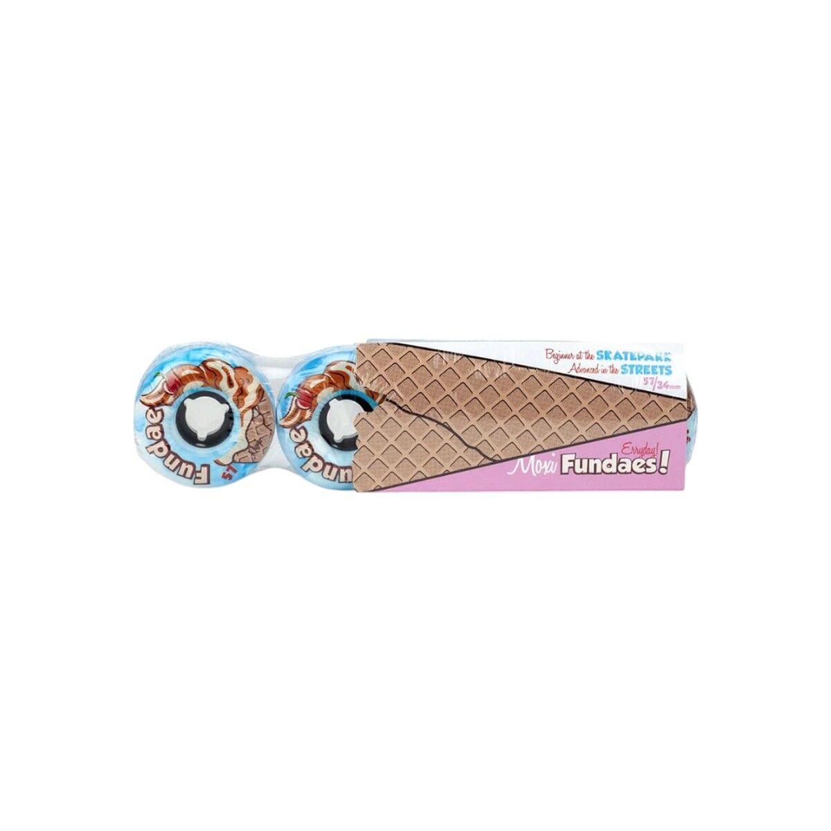 Sokaklar, kaygan skatepark zeminleri ve rampalar için uygun pürüzsüz üretan malzemesi; Lavanta, Bubble Gum (pembe), Birthday Cake (mavi) ve Creme de Menthe (açık yeşil) renkleriyle Fundae, hem yeni başlayanlar hem de sokaklarda deneyimli olup daha fazla hız isteyenler için önerilir!